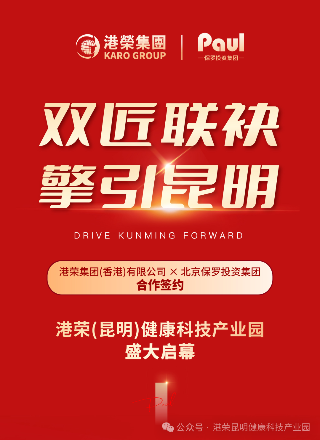 双匠连袂 擎引昆明|港荣团体连袂保罗投资团体,港荣(昆明)安康科技财产园正式动身